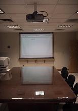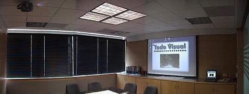 Nuestra recomendación es que para una sala de juntas con uso de luz artificial indirecta y poca entrada de luz exterior (y esta nunca directa a la pantalla) recomendamos una luminosidad por área de 700 luxes.